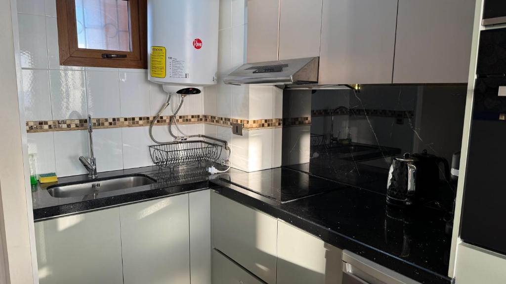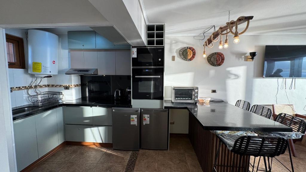 Zona de cocina, Nevera, Microondas, Cocina, Mesa de comedor, Copas de vino